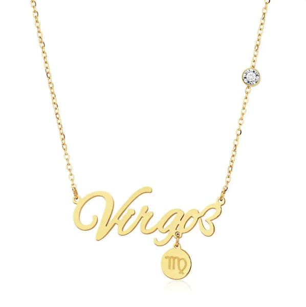 Express your individuality and connect with the stars through our Titanium Steel Diamond Jewelry Twelve Constellation Necklace Pendant!