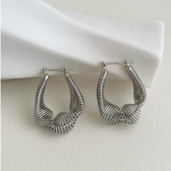 Sporting an unconventional shape, these earrings are not just an accessory, they're a conversation starter. With their twisted coil design, they weave a tale of elegance, transforming any outfit from ordinary to extraordinary.