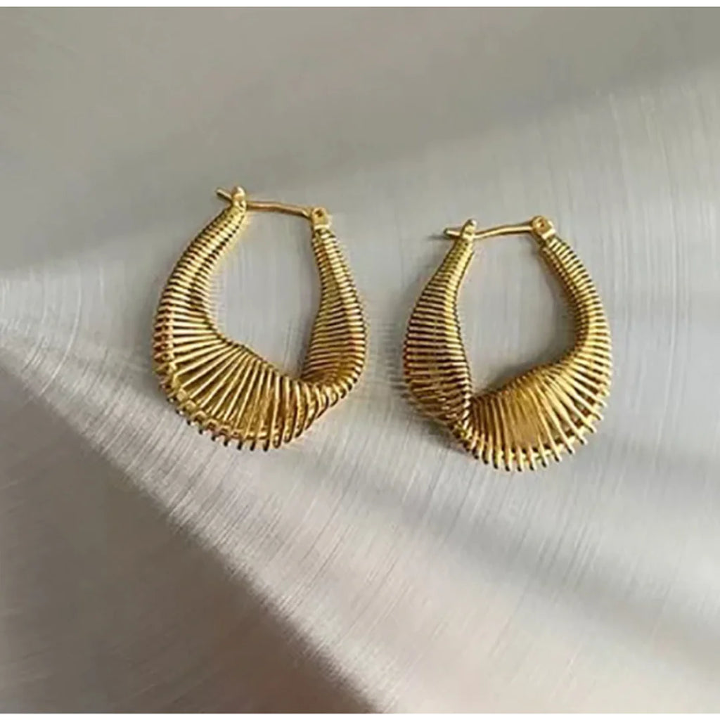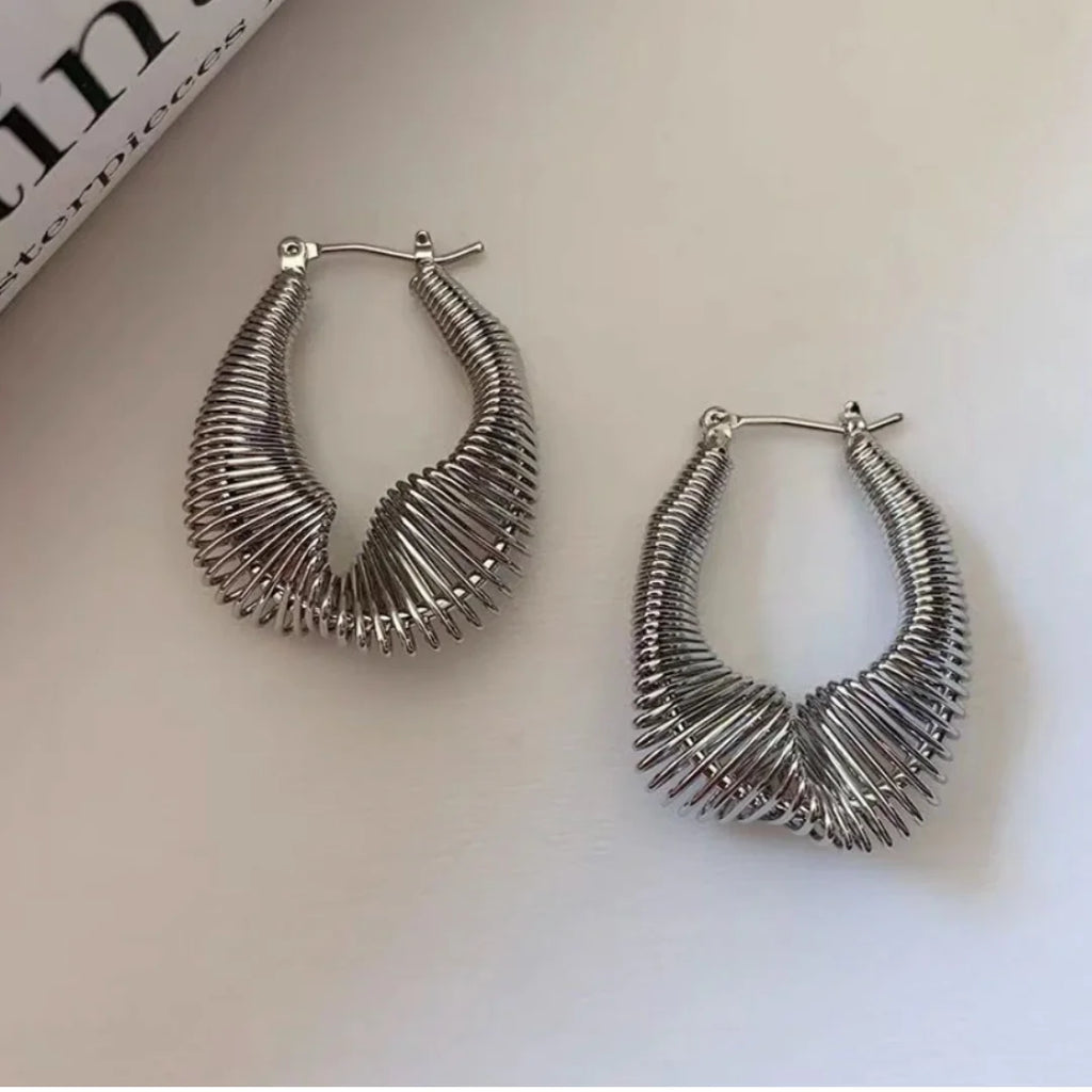 Sporting an unconventional shape, these earrings are not just an accessory, they're a conversation starter. With their twisted coil design, they weave a tale of elegance, transforming any outfit from ordinary to extraordinary.